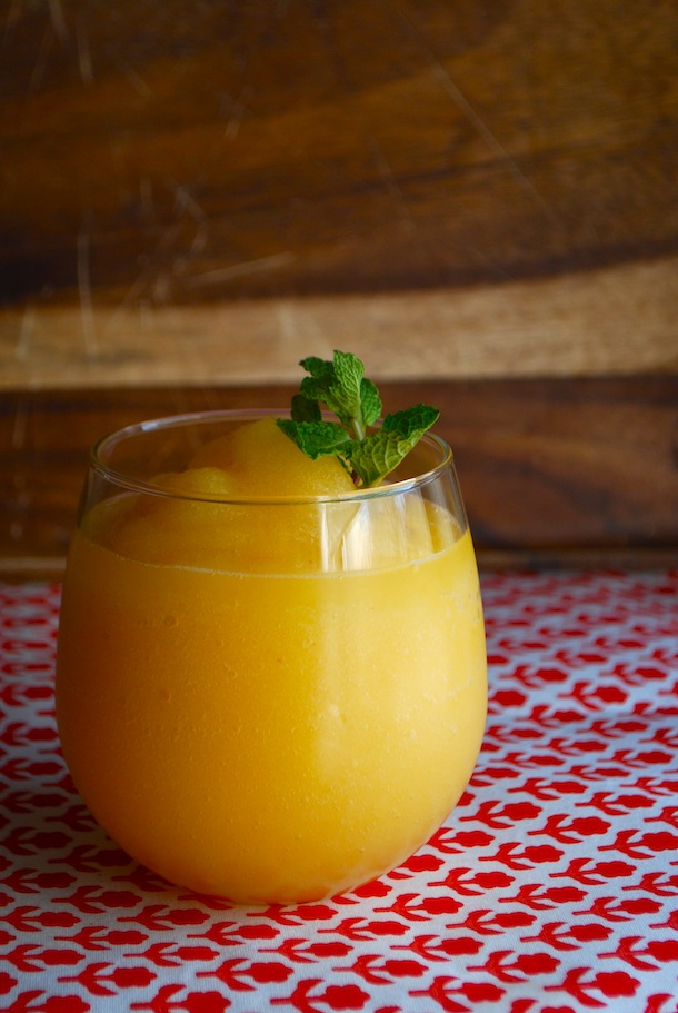 Combine all ingredients in a blender and process until very smooth and slushy. Serve immediately.